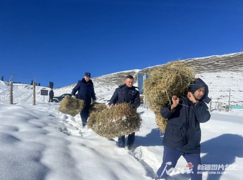 1月14日,新疆天山西部国有林管理局巩留分局在恰西管护所林区为野生动物投放饲草,将“口粮”送至野生动物家门口。